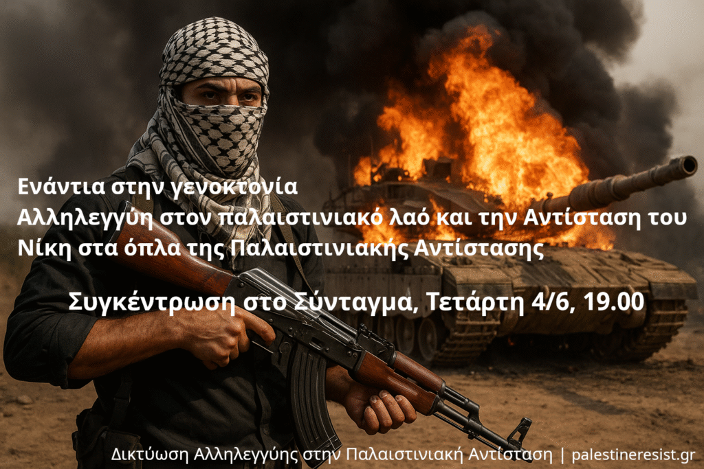 ΣΗΜΕΡΑ: Συγκέντρωση αλληλεγγύης στον Παλαιστινιακό λαό και στην Αντίστασή του
