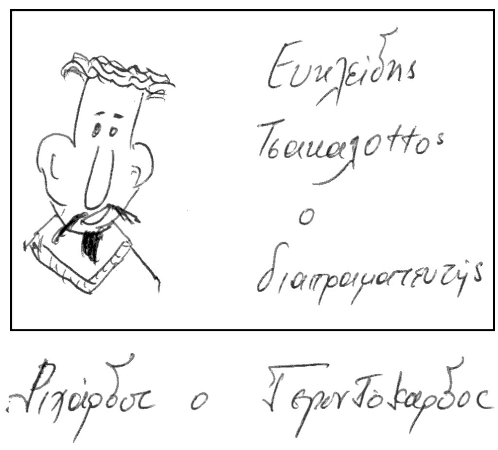 > Τώρα αυτό το «είναι συνηθισμένο να δουλεύει κάποιος αφιλοκερδώς ή επειδή αγαπάει μια χώρα» του Τσακαλώτου τι να το θεωρήσουμε; Σανοεξήγηση; (Ο λόγος για τον πρώην σύμβουλο του Μπαρουφάκη Κιμ Γκλεν, «αμισθί» προσληφθέντα και ακολούθως επ’ αμοιβή μετά την παραίτηση του Γιάνη. Το ύψος της αμοιβής άγνωστο…).