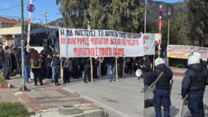 Με ξύλο και χημικά επιτέθηκαν τα ΜΑΤ στους συγκεντρωμένους φοιτητές έξω από ξενοδοχείο στο Καστρί, όπου λάμβανε χώρα, κεκλεισμένων των θυρών και με ισχυρή παρουσία των μπάτσων σε όλη την περιοχή, η…
