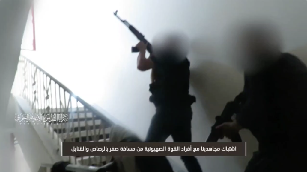 Οι Ταξιαρχίες Αλ-Κουντς δημοσιεύουν σκηνές από επίθεση που πραγματοποίησαν οι μαχητές τους ενάντια σε μια σιωνιστική δύναμη από μηδενική απόσταση μέσα σε ένα σπίτι στη γειτονιά Σουζάια.