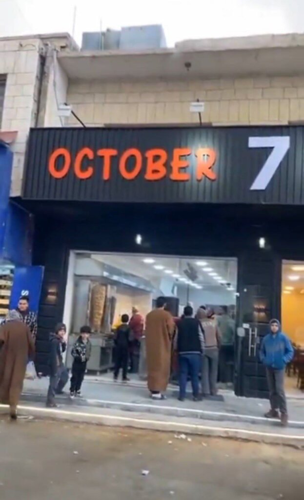 Σιαουάρμα ονομάζεται στα αραβικά ο γύρος, ο οποίος σερβίρεται όπως το δικό μας πιτόγυρο αλλά τυλιγμένο σε αραβική πίτα. Ενας Ιορδανός, λοιπόν, είχε την έμπνευση να ονομάσει το γυράδικο που άνοιξε στην κωμόπολη Αλ-Μαζάρ, κοντά στο Καράκ, “OCTOBER 7”. Ουρές η πελατεία, όπως βλέπουμε και στο βίντεο.
