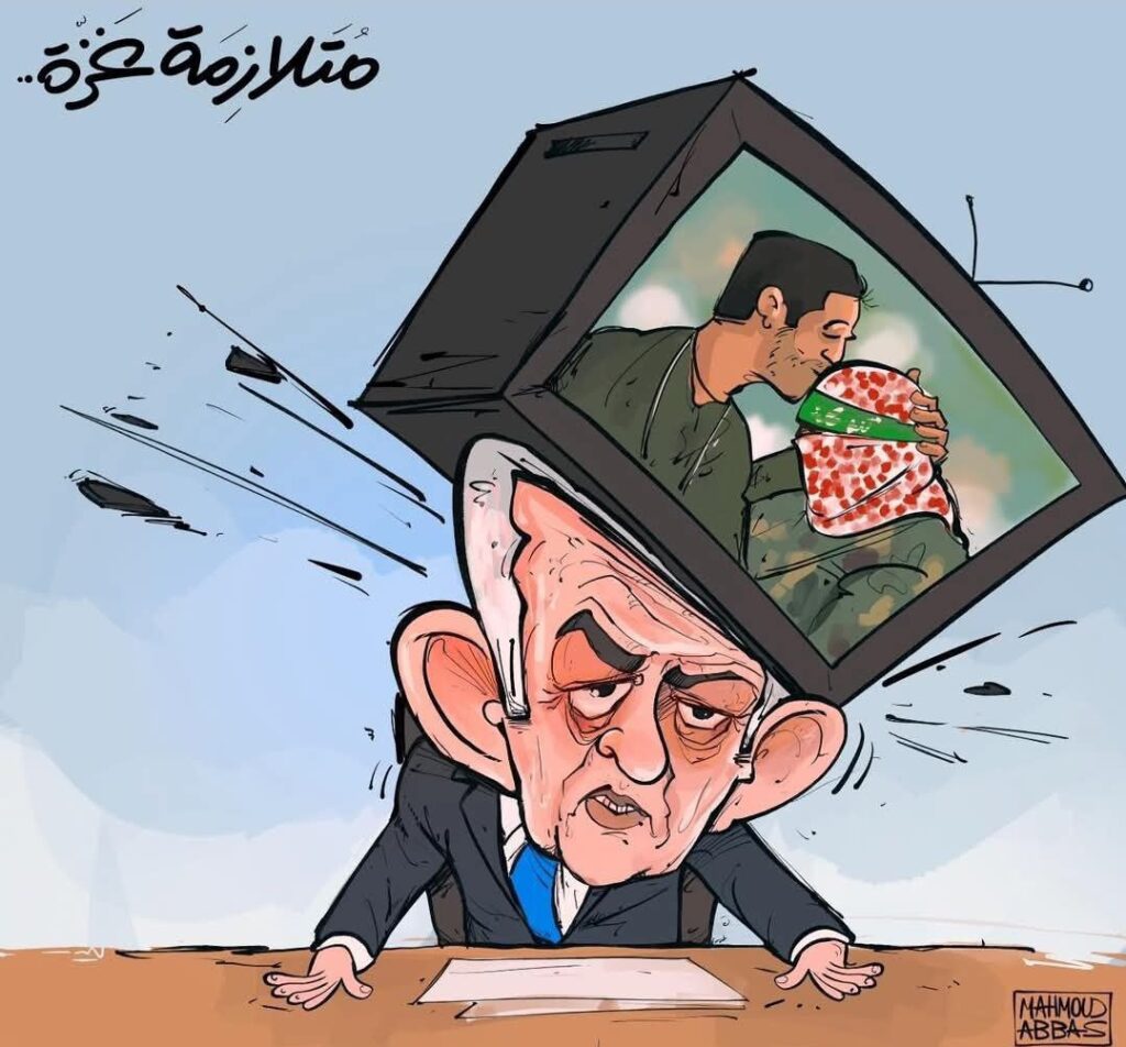 Ενα ακόμα δωράκι στα παπαγαλάκια της παραπληροφόρησης. Σκίτσο της σιωνιστικής Yedioth Ahronoth. Ο Σμοτριτς με τη σιωνιστική σημαία λέει: «Θέλουμε τη γη». Ο αιχμάλωτος κάτω από τη γη λέει: «Μάνα μου».