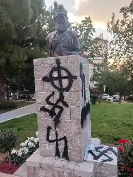 Πήγαν στην Πετρούπολη και βρόμισαν το μνημείο με την προτομή του Αρη Βελουχιώτη, λίγες μέρες μετά τα εγκαίνιά του.