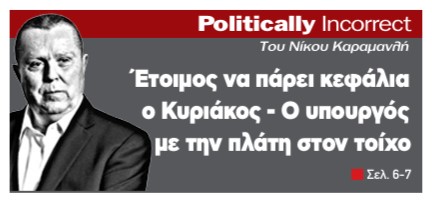 Ποιοι είμαστε εμείς που θα αμφισβητήσουμε το… έγκυρο ρεπορτάζ του εκδότη της Political; Το μόνο που θα θέλαμε να συμπληρώσουμε, με όλο το θάρρος και πάντοτε από αγνο ενδιαφέρον κινούμενοι, είναι να προσέξει «ο Κυριάκος» μην σκίσει κάνα καλσόν όταν θα κάνει τους αποκεφαλισμούς. Το λέμε επειδή καθώς θα τους αποκεφαλίζει τον ένα μετά τον άλλο, θα χυθεί αίμα και το αίμα γλιστράει. Να είναι έτοιμοι ο Σκέρτσος και ο Μυλωνάκης με τις σφουγγαρίστρες…