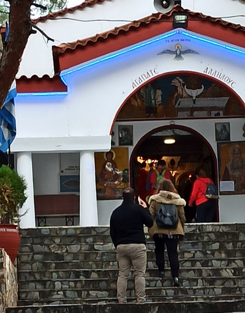 Σύντροφοι που πήγαν για περίπατο σήμερα το πρωί στο Αλσος της Νέας Φιλαδέλφειας δεν πίστευαν στα μάτια τους. Το εκκλησάκι που βρίσκεται εκεί λειτουργούσε κανονικά. Τίγκα μέσα (δέκα με δεκαπέντε άτομα, στριμωγμένα στο μικρό χώρο) και κάποιοι απέξω. Περίμεναν στην ουρά, έμπαιναν από το στενό διάδρομο που είχε μείνει, κατέβαζαν τη μάσκα, φιλούσαν την εικόνα και έφευγαν (επειδή δε χώραγε να στριμωχτούν και άλλοι)! Για μεταλαβιά οι σύντροφοι δεν είδαν κάτι (δεν το ξέρουν και καλά το χριστιανικό τυπικό και προτίμησαν να συνεχίσουν τον περίπατό τους, αντί να περιμένουν το «λάβετε, φάγετε…»).